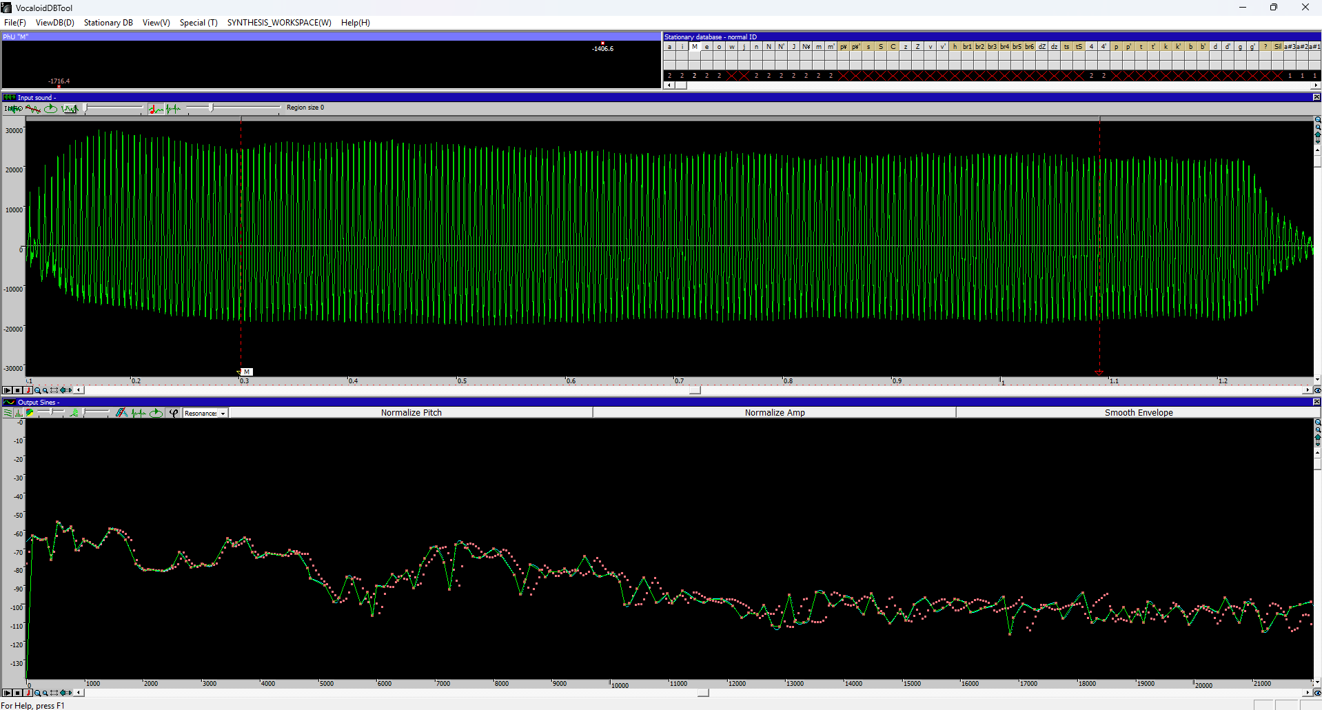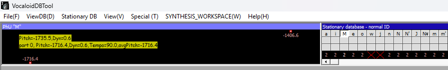 答:标记位置错误!Vocaloid 对错误非常敏感。DevKit虽然是连续标记的,但您仍然需要正确放置标记。或者它们存在音高错误。在主窗口中,使用 Ctrl+单击来修正样本的音高。Ctrl+D+单击来删除音高。尤其要注意的是,如果辅音没有显示,请在其下方添加音高。