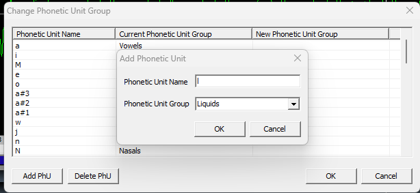 答:使用 Special 中的字典编辑器添加更多元音(实际标记为Change Phonetic Unit Group(更改音位单元组)),然后继续操作。